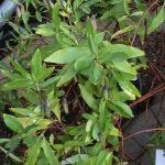 Leaves glossy green on the upper surface, ± 5 cm long, ± 2 cm wide.